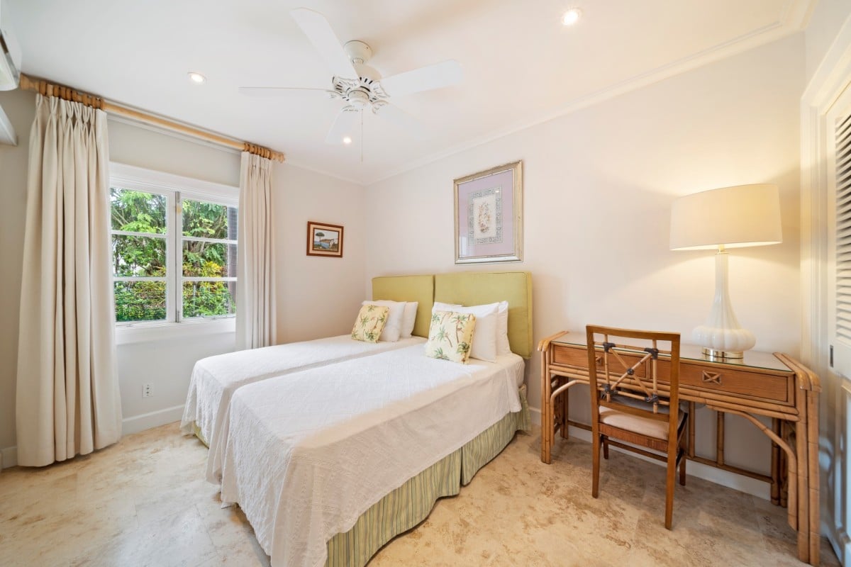 Bedroom 4: Bedroom with two single beds (can be converted to king-size bed), WiFi, ceiling fan, A/C and en-suite bathroom with shower, vanity and WC. 2 guests maximum.