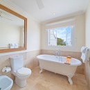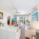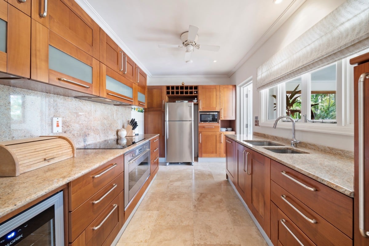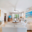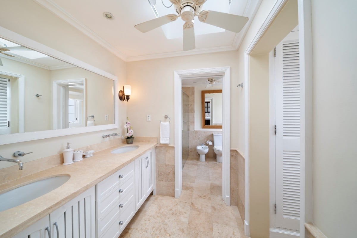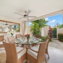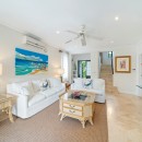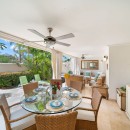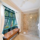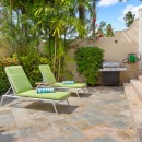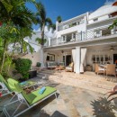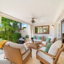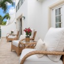 Outside, Hummingbird's charming garden setting seamlessly extends to an expansive pool deck. The focal point is a generously sized free-form communal swimming pool with a mesmerizing cascading waterfall. Mullins Beach, offering unparalleled swimming and water sports, lies just beyond the villa's borders.