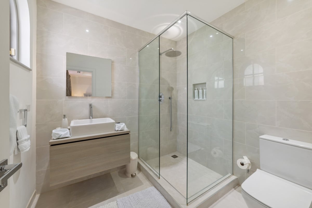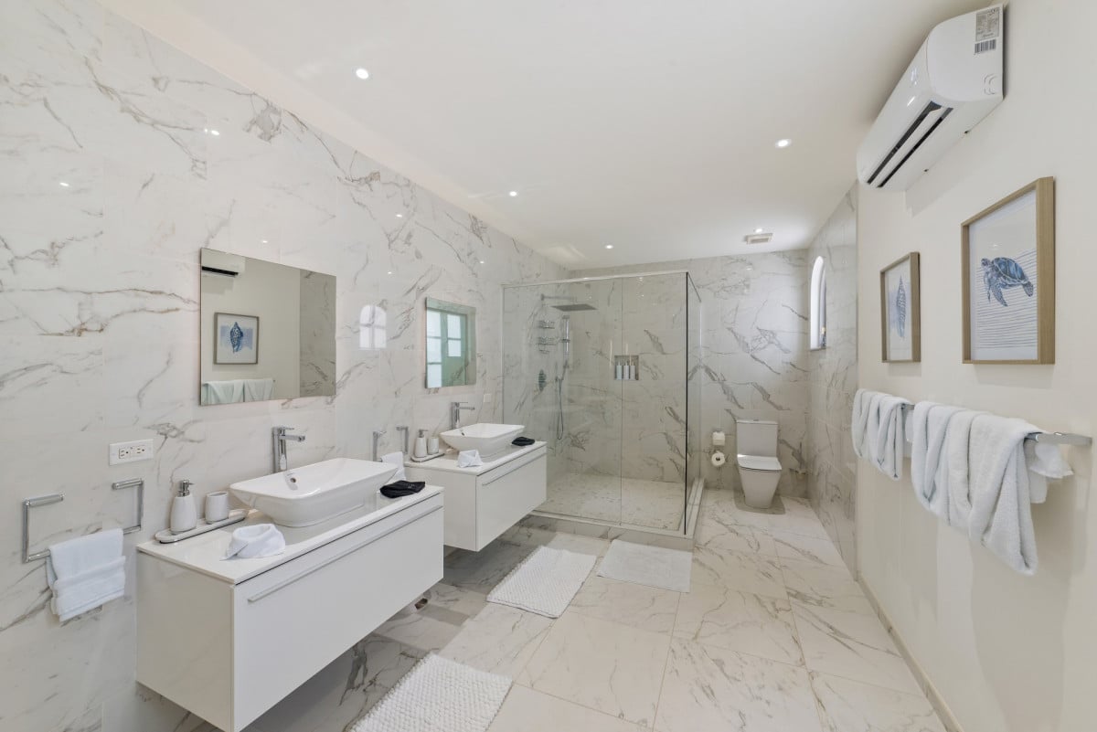 Bedroom 2: Bedroom with two single beds (can be converted into a king sized bed), A/C and en-suite bathroom with shower, double vanity and wc. 2 guests maximum