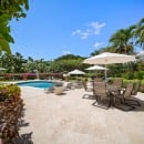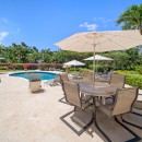 Yet, you may be so enamored with the villa itself that you rarely stray far from its gorgeous grounds. For many, it is the pool area that proves so hard to resist. There is a kidney shaped pool that gazes out to the golf course, but which is also framed by an elegant stone terrace. There are sun decks and al fresco dining areas, and just a few steps up take you to the verandah. This is decorated like a lush interior space and offers you full-sized lounging furniture and a formal dining room.