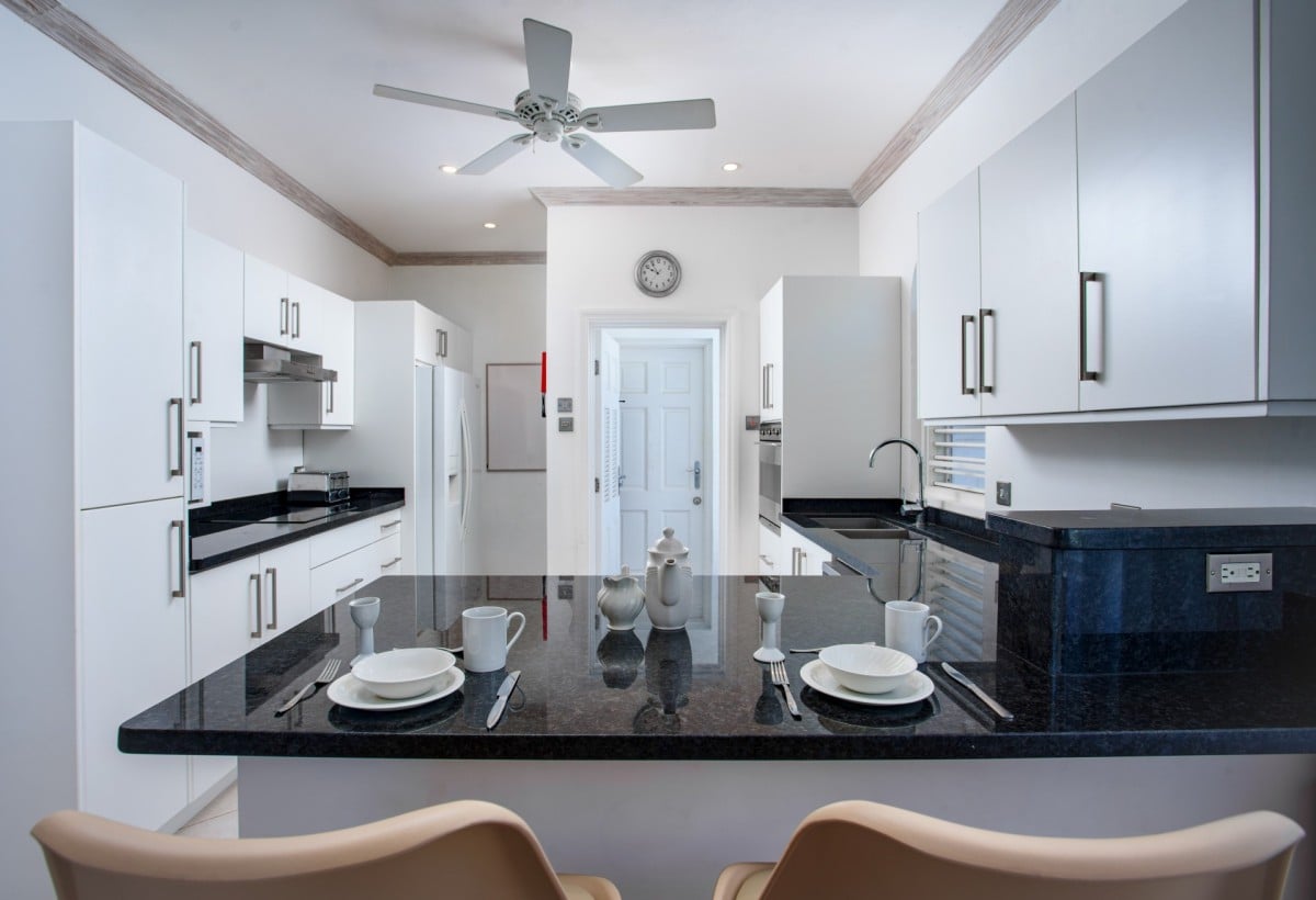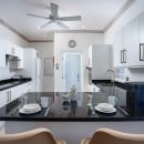 The villa has an open floor plan designed to bring people together. The lounge and dining area offers cooling ceiling fans, comfortable seating, and wireless Internet. There is a modern kitchen that offers a microwave, oven, and breakfast bar. The lounge also provides access out to the lounge through stunning French doors.