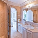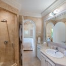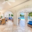 The grounds alone are a wonderful experience, but the heart of the property is the pool terrace. From here you can enjoy a full view of the beautiful villa's design. There is an al fresco dining pavilion, a sun deck with oversized lounges, and a pool house. Just steps from the pool terrace is the fully furnished verandah, which also serves as the ultimate outdoor living space. With a full al fresco living room, it opens inward to the enormous and truly stunning great room. The palette throughout the property emphasizes the soothing hues of cream and sand, enhancing the airy feeling provided by oversized doors and windows.