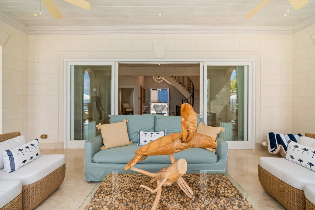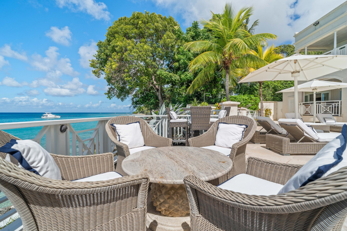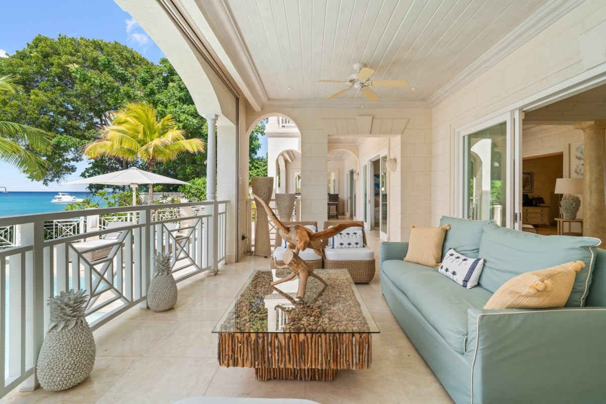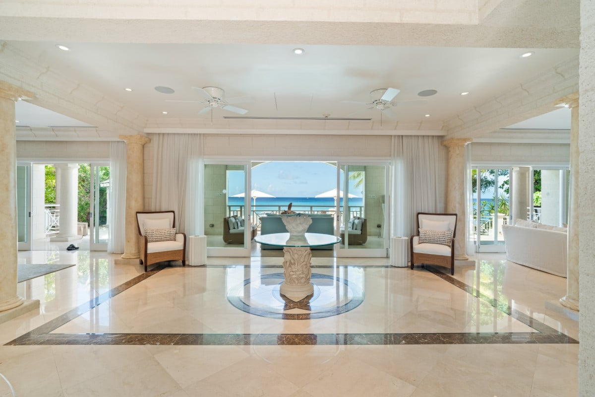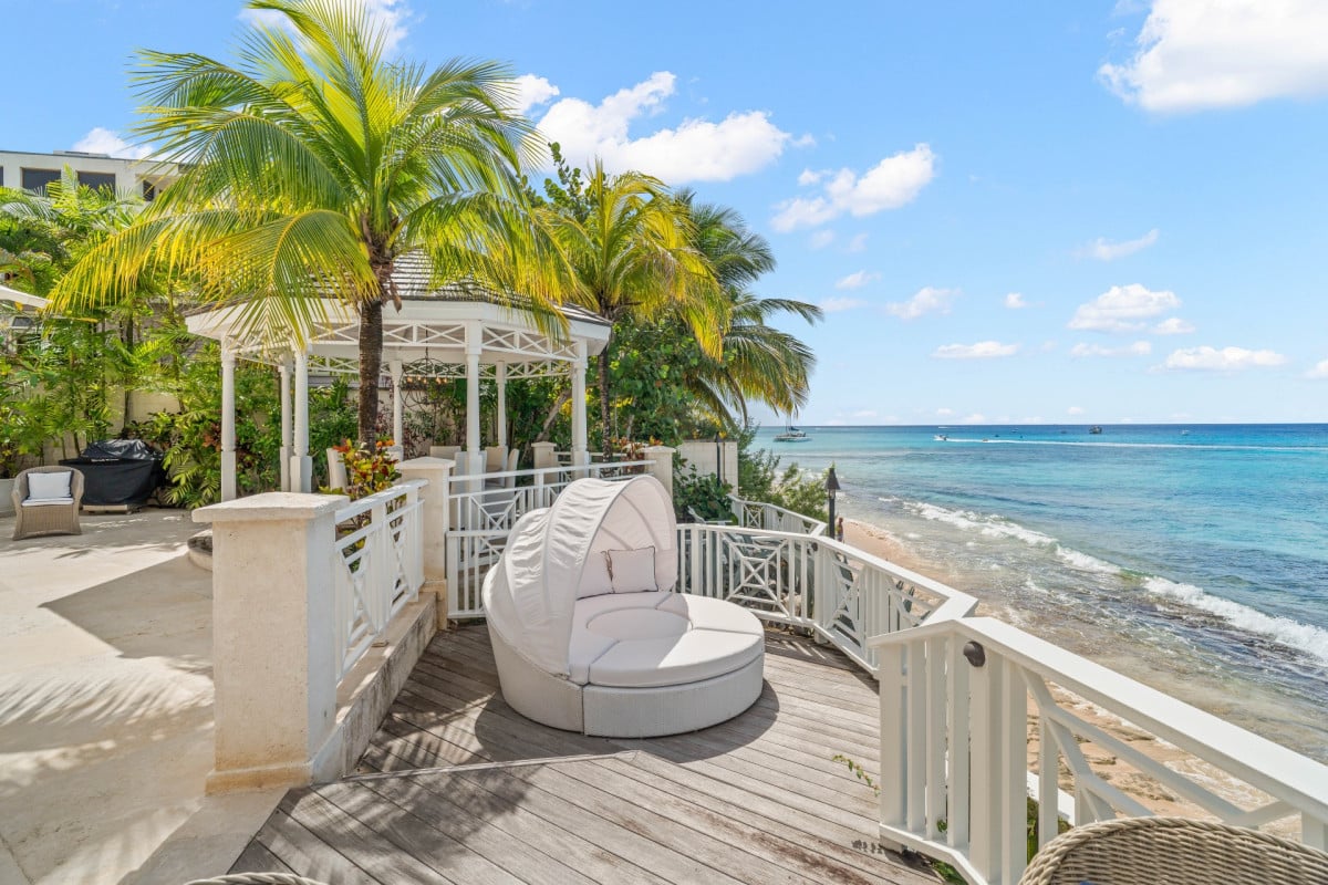 Luxury 5-bedroom beachfront estate on Barbados’ West Coast with private guest cottage, panoramic Caribbean views, and 10,000 sq ft of elegant indoor-outdoor living.