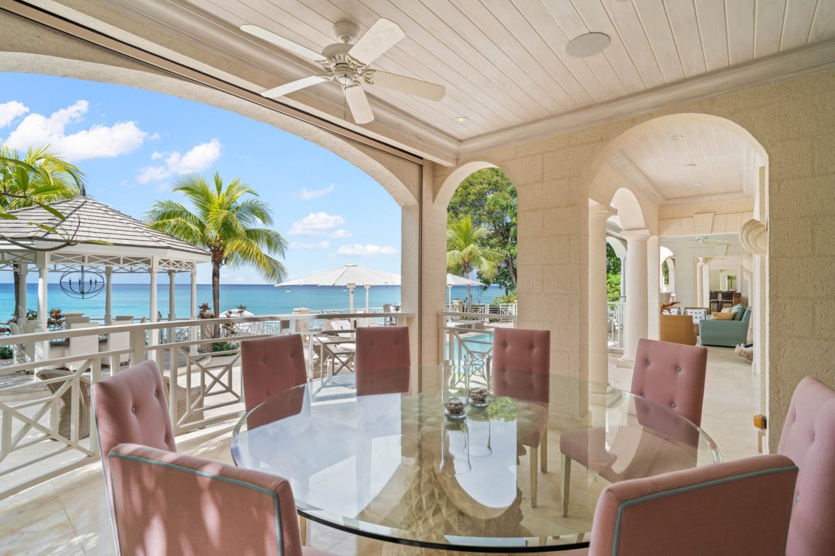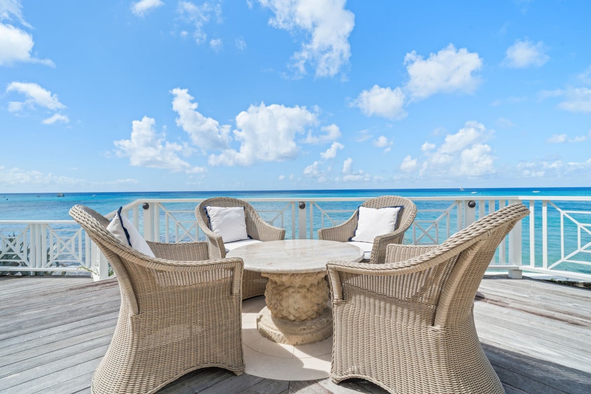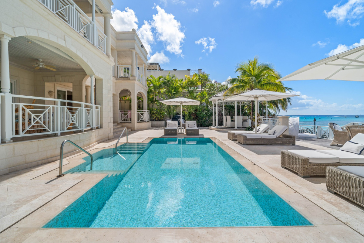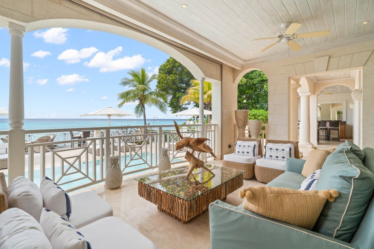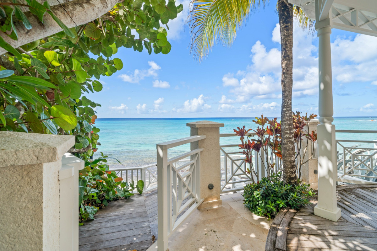 Luxury 5-bedroom beachfront estate on Barbados’ West Coast with private guest cottage, panoramic Caribbean views, and 10,000 sq ft of elegant indoor-outdoor living.