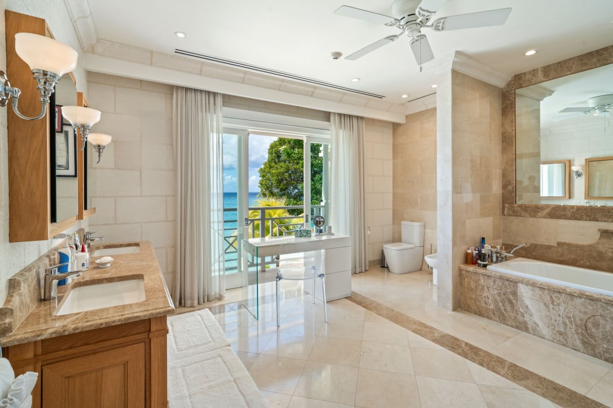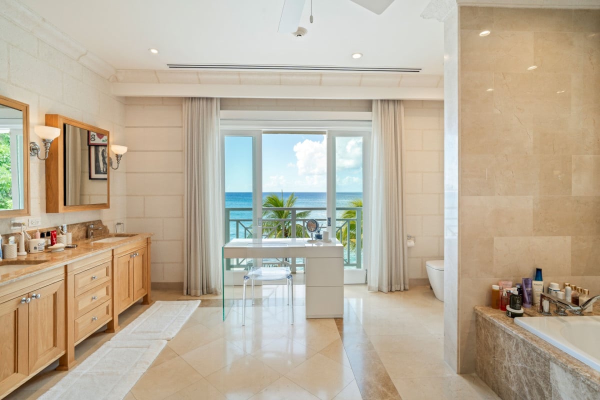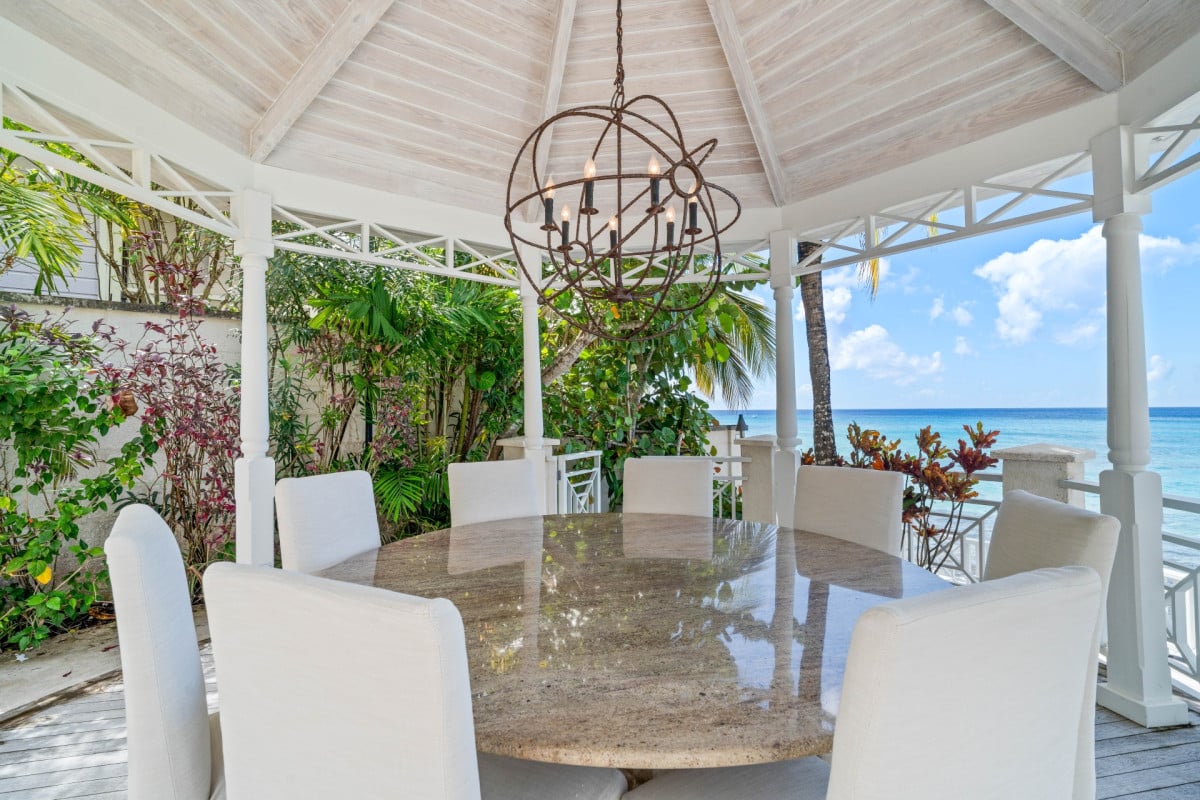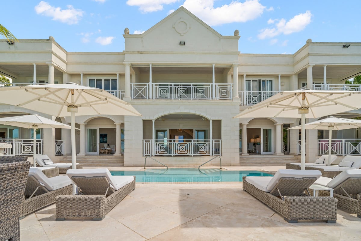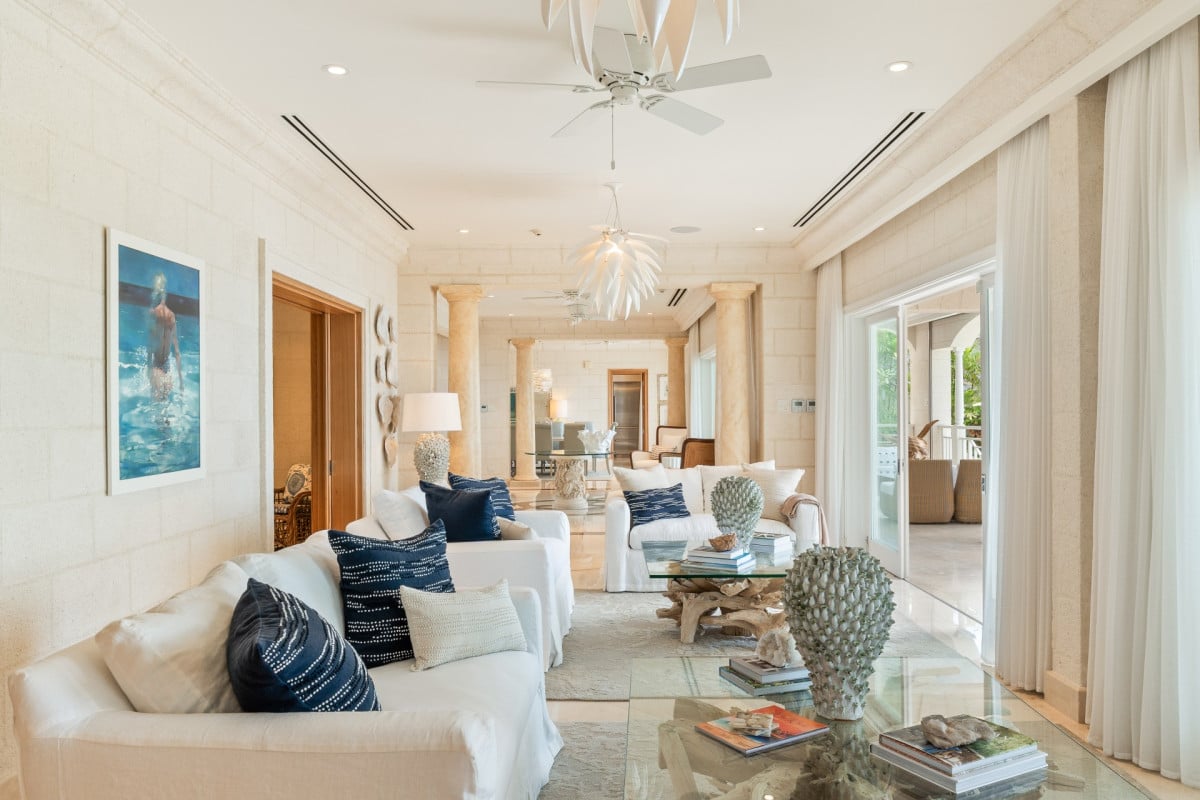 Luxury 5-bedroom beachfront estate on Barbados’ West Coast with private guest cottage, panoramic Caribbean views, and 10,000 sq ft of elegant indoor-outdoor living.