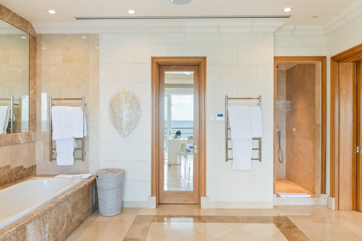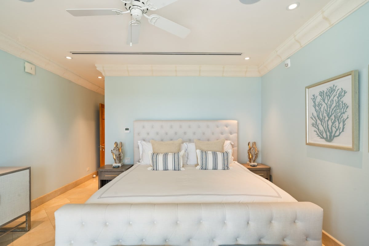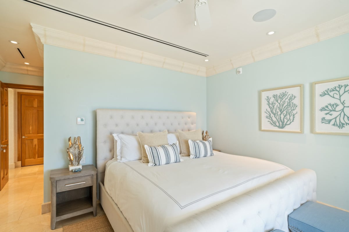 The villa features five impeccably designed en-suite bedrooms, each offering a serene and private retreat. Four ocean-facing suites are located within the main residence, all enjoying calming sea views, while a separate one-bedroom guest cottage provides additional privacy—ideal for extended family, staff, or visiting guests. Every bedroom is thoughtfully appointed with premium linens, air conditioning, and spa-inspired bathrooms, ensuring comfort at the highest level.
