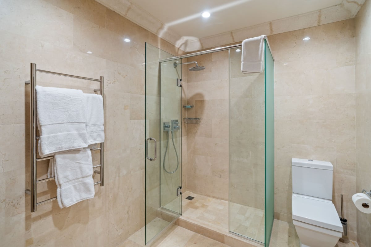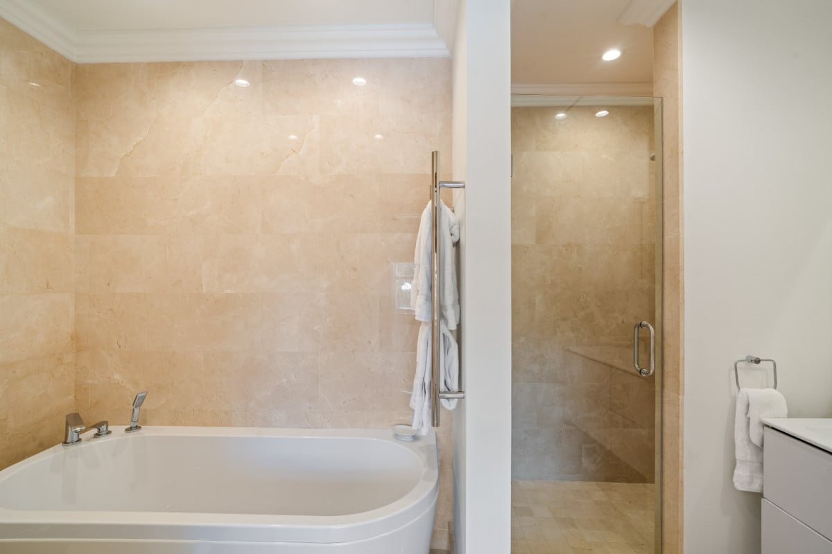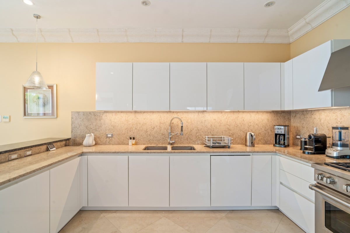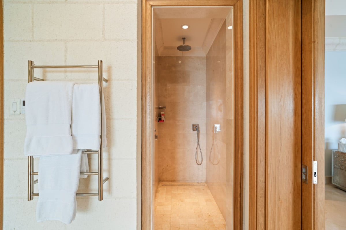 The villa features five impeccably designed en-suite bedrooms, each offering a serene and private retreat. Four ocean-facing suites are located within the main residence, all enjoying calming sea views, while a separate one-bedroom guest cottage provides additional privacy—ideal for extended family, staff, or visiting guests. Every bedroom is thoughtfully appointed with premium linens, air conditioning, and spa-inspired bathrooms, ensuring comfort at the highest level.