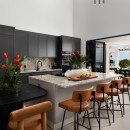 Step inside to an open-plan living space defined by clean architectural lines, sculptural lighting, and a designer kitchen complete with a bar—ideal for sunset cocktails or leisurely morning mimosas.