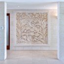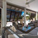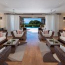 With a stone surround, the pool area also provides you with an assortment of luxurious, outdoor spaces that include several open air lounges and cozy outdoor living rooms beneath the verandahs. Al fresco dining on the terrace is also part of the experience, and inside, the textured stone walls, pale wood floors and natural sea grass furnishings create an airy, and earthy feel that only enhances the stunning scenery scene through the enormous doors.