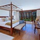 The bedrooms are decorated in exquisite taste with four-poster beds, gorgeous linens and spacious interiors. Most open to the terrace or offer uninterrupted views of the sea and gardens. Each offers a spa-like, ensuite bath. Some have pedestal tubs, outdoor showers and tubs, and all feature signature toiletries.