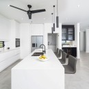 Upon entry, the foyer seamlessly transitions into an expansive open-plan living area, effortlessly connecting indoor and outdoor spaces. Large sliding doors facilitate the flow of tropical breezes and provide stunning views from the spacious terrace, perfect for entertaining and overseeing a 46-foot saltwater swimming pool. The villa boasts outstanding culinary facilities, encompassing the main kitchen, a separate chef's kitchen, and staff accommodations. Beyond that, the property offers a range of amenities, including a media room, gym, private office, and a rear lawn equipped with badminton and volleyball nets. Al fresco dining is made delightful with the outdoor kitchen and BBQ.