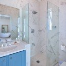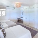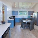 The focal point of the home is the oversized verandah that frames the pool area. With its wooden decking, sun beds, hammocks, and private pool, it will easily become a favorite spot day or night. Tucked beneath the shade of the verandah is an al fresco dining and lounging spot, and nearby is another lounge with a breakfast bar opening into the kitchen. The bright and airy kitchen is sure to satisfy even the most discerning cooks, and it features a pale blue and white palette that is a perfect complement to the beach just steps away. An eat-in design, it features top of the line appliances and gear perfect for feeding even the largest groups with ease.