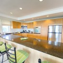 Palm Beach 311 welcomes guests to a warm, country chic touched with sumptuous hints of opulence that is never overdone. The master suite, for instance, has diamond-shaped, white floor tile that makes the polished antique writing desk with wrought iron legs shine distinctly beneath a framed picture of sea life in various pinks. In the main room, a wicker living room set with pastel-lime cushions and island-blue pillows sits framed by matching valences with sheer curtains, bringing the country feel home with warm lighting and striped kitchen bar stools.