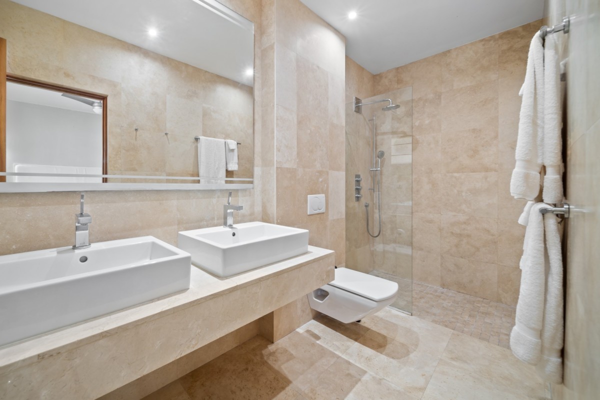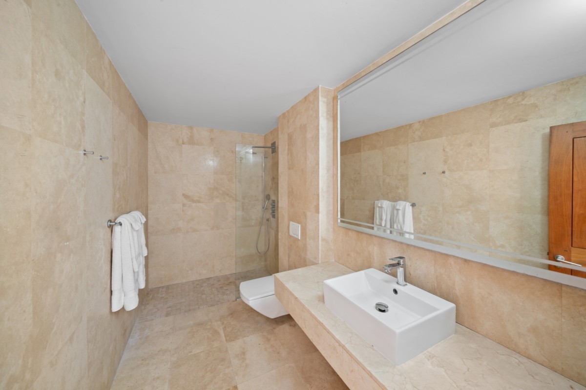 Bedroom 2: Bedroom with a king bed, A/C, WiFi, TV, and en-suite bathroom with shower, vanity, and WC. 2 guests maximum