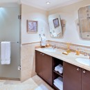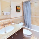 The three bedrooms use low-key décor in hues of honey and cinnamon. The master suite opens to the verandah and features a king bed, another offers dual twin beds, and a third is a large room with queen bed and pullout sofa. Each has a large, ensuite bathroom.