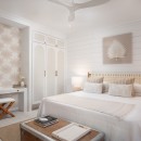 Bedroom 1: Master bedroom with a king-size bed, A/C, ceiling fan, TV, WiFi, safe, sea view, and en-suite bathroom with shower, vanity and WC. 2 guests maximum.