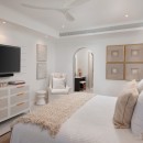 This luxury beachfront apartment features three bedrooms and four bathrooms, fully air-conditioned and impeccably furnished with contemporary artwork and upscale decor. The master bedroom showcases breathtaking beach views and includes a lavish en-suite bathroom with an expansive wooden shower. The second and third bedrooms each offer king-sized beds and luxurious en-suite bathrooms with sleek showers.