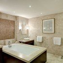 The dining room table is set on an indoor/outdoor covered terrace that overlooks the sea. This welcoming space also features relaxing seating areas, the perfect spot to relax with family and friends. Villa Sandy Cove offers a private plunge pool for a refreshing dip after a wonderful day in the Barbados sun. The condo provides lavish tiled baths, some with dramatic soaking tubs, a large, fully-equipped gourmet kitchen with a convenient breakfast bar and desirable features including Miele appliances, a wine cooler and an ice maker.