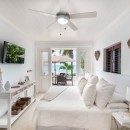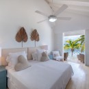 Three bedrooms and three-and-a-half en-suite baths with balcony or terrace access fulfill the kind of luxurious comfort that can only be had at a place as beautiful as St. Barts. Each is decorated in white linens with tasteful wicker hearts and baskets, ocean-denim accent pillows and bottle glass lamps, and dried palm fronds. The effect is one of a classic English seaside abode.