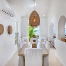 The second-floor balcony has a wicker sofa and armchairs where guests can oversee the back garden, pool terrace, and the low fence with its gate open onto the beach. The pool is next to two lounge chairs and a set of stairs that leads to more lounge chairs in the garden. A dining table on the terrace with a parasol invites brunch alfresco, perhaps catered or prepared in-house by a private chef. Complimentary concierges can assist in the royal treatment at Milord Sunset Villa by arranging bookings, tickets, events, and in-house amenities or staff at guests’ request. They are experts in world-class hospitality and always give the full royal treatment, short of saying, “Milord.”