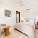 Each of the bedrooms six bedrooms is an equally luxurious retreat, with all on an upper level. Each has a king-sized four poster bed, dressing room, private terrace, luxuriously appointed ensuite bath, and entertainment equipment. The master suite also features an enormous soaking tub tucked into a stunning space that gazes out to the beach just below the property.