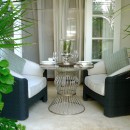 Though it has been designed for two guests, this villa is spacious and lavishly furnished and decorated with wonderful art, a soothing and appealing palette, and with tremendous style and charm. One bedroom and two bathrooms allow you to host guests during a stay. The open floor plan that contains the formal living room, dining area and gourmet kitchen features high ceilings and enormous doors that open to the view. Sea breezes and sunlight make their way into the interiors, and the furnished terraces will continually draw you outdoors.