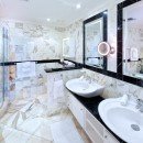 Schooner Bay 204 comfortably accommodates up to four guests. Both bedrooms are air-conditioned and boast opulent marble en-suite bathrooms and walk-in closets. The master suite offers direct access to a private terrace, while the second bedroom features a king-sized bed convertible into two twins.
