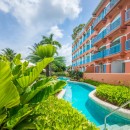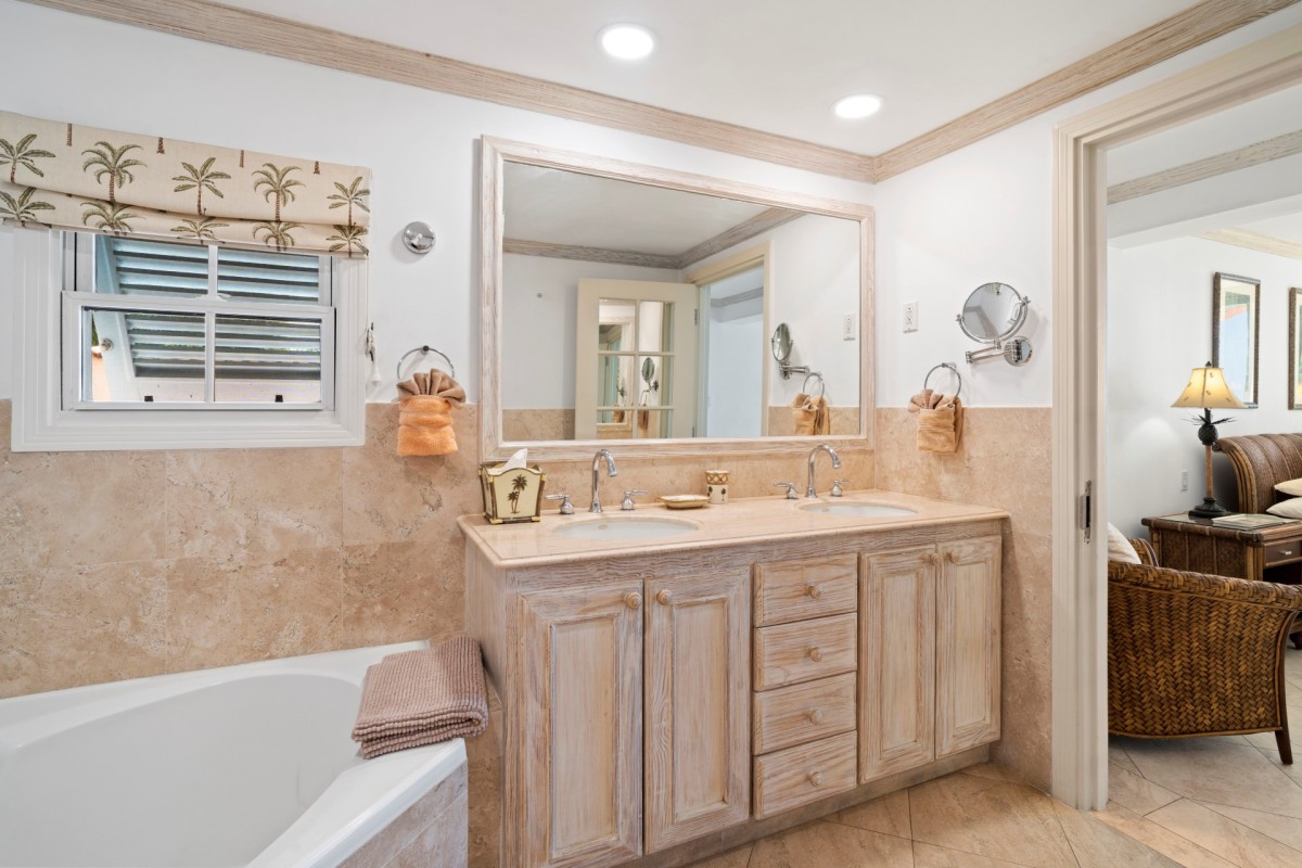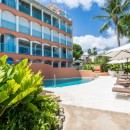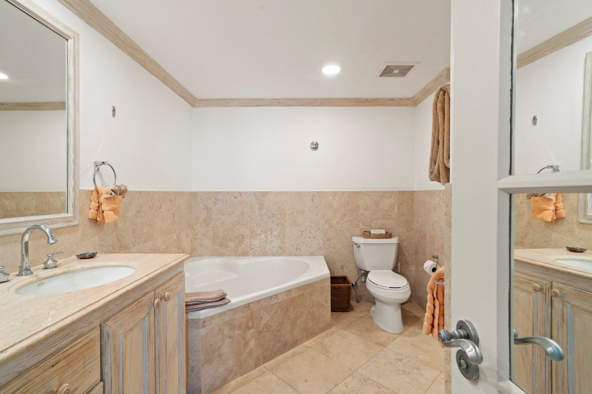 Villas on the Beach 201, Barbados. Villas on the Beach graces the picturesque West Coast beach, nestled in the heart of Holetown, St. James. This haven is cocooned within lush tropical gardens, offering a serene retreat. A stone's throw from your doorstep, you'll discover a plethora of world-class amenities befitting this prestigious destination. Indulge in exquisite fine dining, cozy bistros, beachfront bars, and vibrant nightlife. Explore superb duty-free shopping, pamper yourself at luxurious spas and salons, and stock up at a well-appointed grocery store. For added convenience, there's a new 24-hour medical center nearby. Golf enthusiasts will delight in our proximity to three renowned golf courses: Apes Hill Club, Sandy Lane, and Royal Westmoreland.