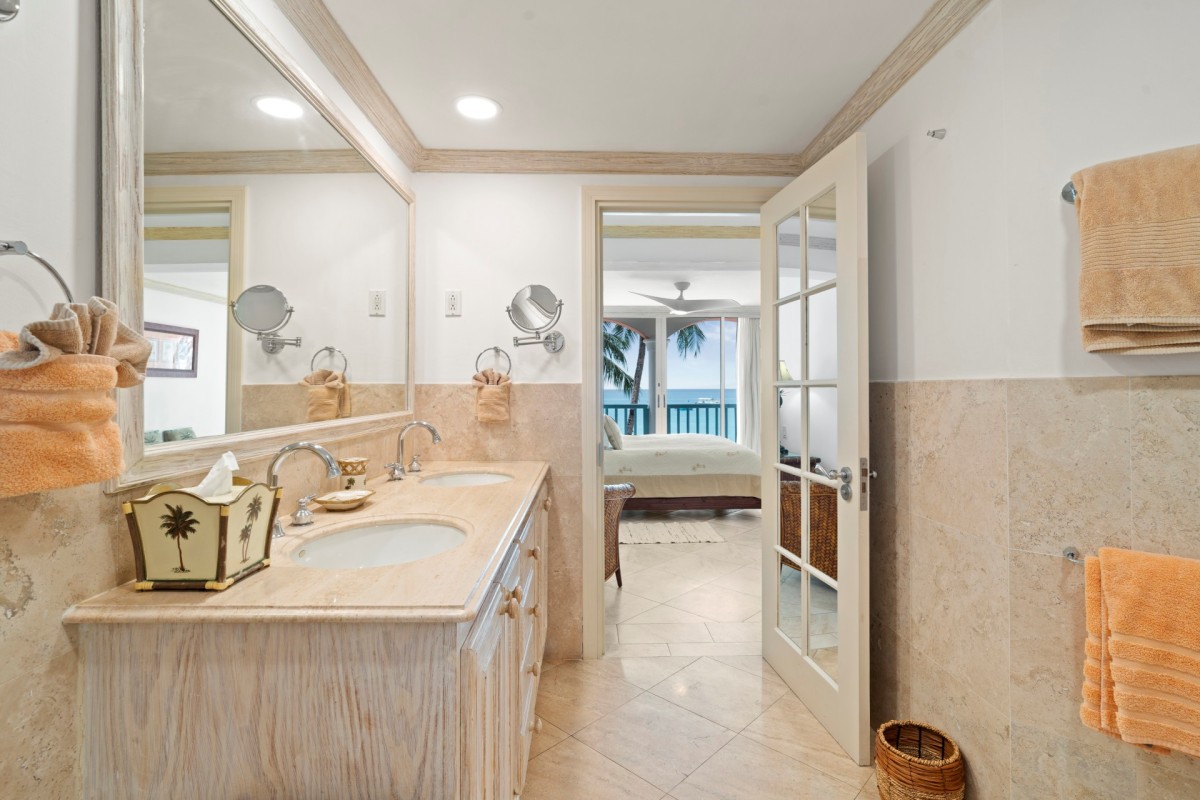 Apartment 201, situated on the first floor, boasts breathtaking views of the pool and the azure Caribbean Sea. This striking, open-plan three-bedroom, four-bathroom luxury condominium is impeccably adorned, fully air-conditioned, and adorned with ceiling fans throughout. Relish the sunset from the expansive patio dining area or bask in the sun poolside by the lagoon-style pool. Take strolls along the pristine beach or immerse yourself in the tranquil sea.