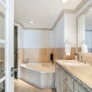 The master bedroom is thoughtfully positioned to capture those mesmerizing ocean vistas—wake each morning to the gentle rhythm of waves lapping the shore. Both bedrooms include ensuite bathrooms, ensuring privacy and convenience for all guests.