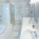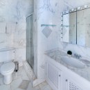 Each of Mullinover’s spacious bedrooms boasts its own en-suite bathroom and walk-in closet, ensuring privacy and convenience for guests. With king-size beds, the rooms provide restful nights for all. Bedroom 3 offers a sleek en-suite with a shower and single vanity, while the other two feature marble finishes, a tub, double vanity, and a separate shower.
