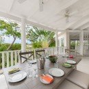 You can step outside to take a dip in the pool, lounge in the chairs on the deck, or sit at the patio and chat with friends. A covered area with ceiling fans is the perfect place for an outdoor meal or drinks in the evening. A barbeque grill is also provided for making fresh meals under the sun or stars. This villa is a gorgeous space that you won’t find anywhere else.