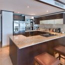 There are 3 bedrooms, 2 with king beds and 1 twin room for the kids ( all ensuite). A house keeper calls every day and does a great job tiding up.