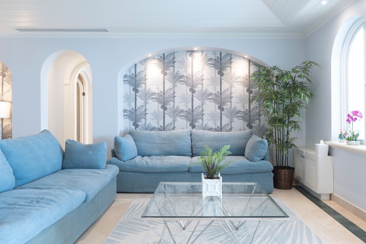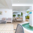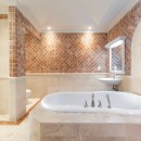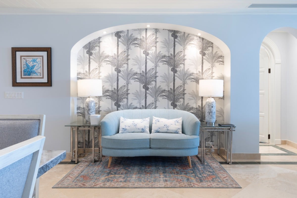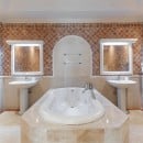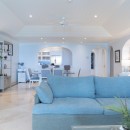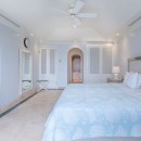 Stepping in through the picturesque arched doors, the guest can take a break in the living room area with its cool marble floors and pale palette it is a truly soothing space. A large living room is open to the entertainment area, and this leads to the formal dining room. Sitting adjacent to the kitchen, it is roomy and bright, and will be even more relaxing if you take advantage of the cook services that guests have available.