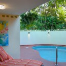 Even the bedrooms are opulent retreats and feature beautiful décor, large and private baths, and two of them offer you private terraces. Two are on an upper level and the third is separate and opens to the gardens.