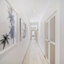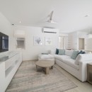 The villa’s tasteful palette of whites, tans, and blues, accented with elegant artwork, creates a warm and inviting atmosphere.