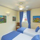 Bedroom 3: Bedroom with 2 single beds, ceiling fan and shared bathroom (with bedroom 2) with shower, vanity and wc. 2 guests maximum
