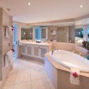 Though it is a one-bedroom villa, it features a large and airy space to enjoy each night of rest, and comes with one of the most opulent private baths imaginable. An oversized tub, free-standing shower, and dual vanities make the bathroom a spa-like space to enjoy.