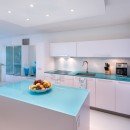 Yet, if you wish to make the villa your sole destination, it provides all that is needed to enjoy a lengthy and comfortable getaway. As noted, there is the large and private terrace tucked beneath a verandah. Here you have al fresco dining space, a large lounge area, and a sunbed all surrounded by native palms and landscaped grounds. Step in through the oversized doors and you enter a small office and lounge space that makes for an ideal space to work or simply lounge. In a bit further is the great room with a larger living room area and entertainment space, and this opens to the kitchen. Oversized and full of premium appliances, it offers up an island for working and dining, and all of the gear needed to make even complex meals or drinks.
