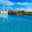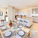 With its arches ensuring you savor every sea breeze and view, it features an al fresco dining room and barbecue area along with a full-sized outdoor lounge. There is also an upper story terrace with the same design to provide non-stop enjoyment of the setting. The interior emphasizes that airy feel and includes several lounges, a full dining room, a media room and the gourmet kitchen.