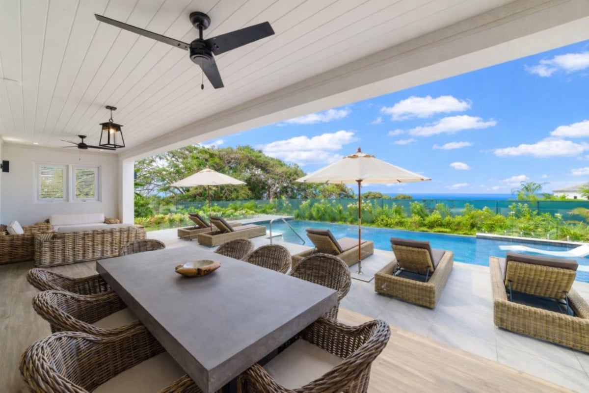 Floor-to-ceiling sliding glass doors open onto a stunning 16’ x 40’ covered terrace, complete with a fully integrated BBQ kitchen. This is where days turn into unforgettable evenings—sunset cocktails, alfresco dining, and uninterrupted views of Barbados’ West Coast.