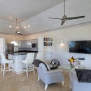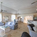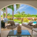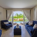 Stepping inside, the villa is just as inspiring thanks to banks of windows that open wide to the sea breezes and sea views. The pale palette of cream and sky blue only enhance that sense of space and light. There is a great room with large living room, beautifully appointed with sofas, armchairs and entertainment system. There is a formal dining area, breakfast bar and amazingly well furnished gourmet kitchen that is open to the views, too.