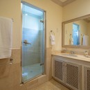 There are the three bedrooms, and each is a delightful retreat. There is a king suite which opens to the terrace and two additional king suites with sea or garden views. Each has a large and private bath.