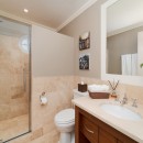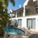 The ground-floor bedrooms at Sugar Cane Ridge 3 serve as tranquil sanctuaries, with direct access to the inviting outdoor pool terrace. The master bedroom includes an ensuite bathroom with a bathtub, while the second and third bedrooms share a well-appointed bathroom, ensuring both comfort and privacy for all guests.
