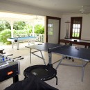 The cottage features a stunning games room with media center, air hockey, table tennis and more. Above is the sixth bedroom suite.