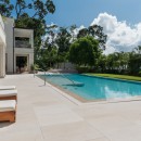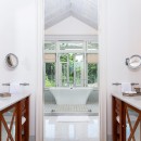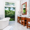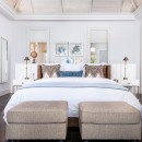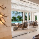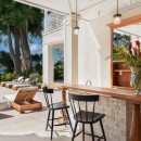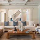 The two-story villa is fully-staffed with a private chef, a housekeeping team, grounds crews, pool team, and an on-call property manager. They are there to meet guests’ needs, and that leaves little more for travelers to do than arrive and begin enjoying the premises. These are impressive and include a private path to the beach, but also a large and beautifully-appointed pool area, too. With an oversized pool, and several sun decks, it is a great spot to gather. It features an al fresco lounge with massive banquette sofas, and backs up to a verandah where more outdoor lounging as well as dining will be enjoyed.