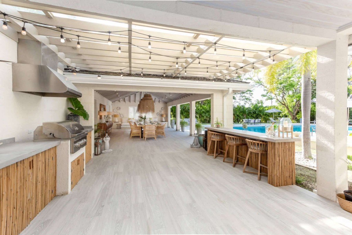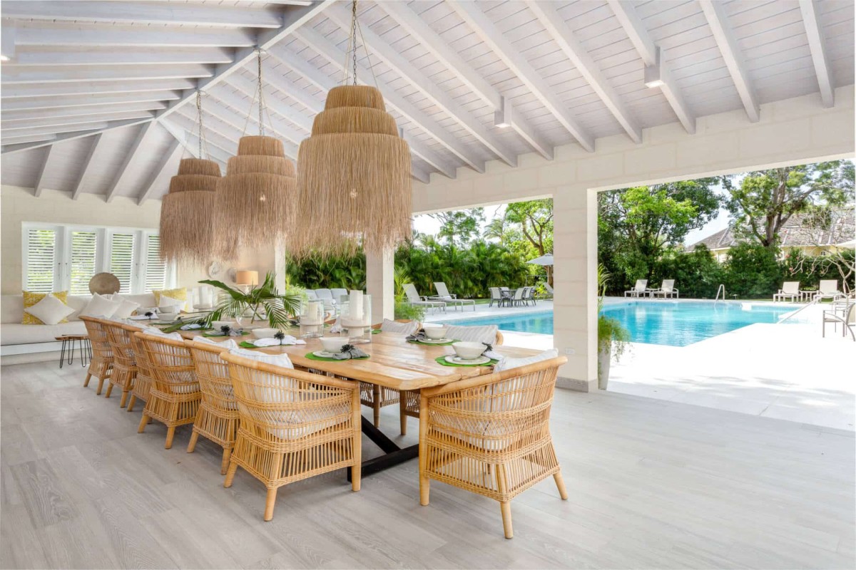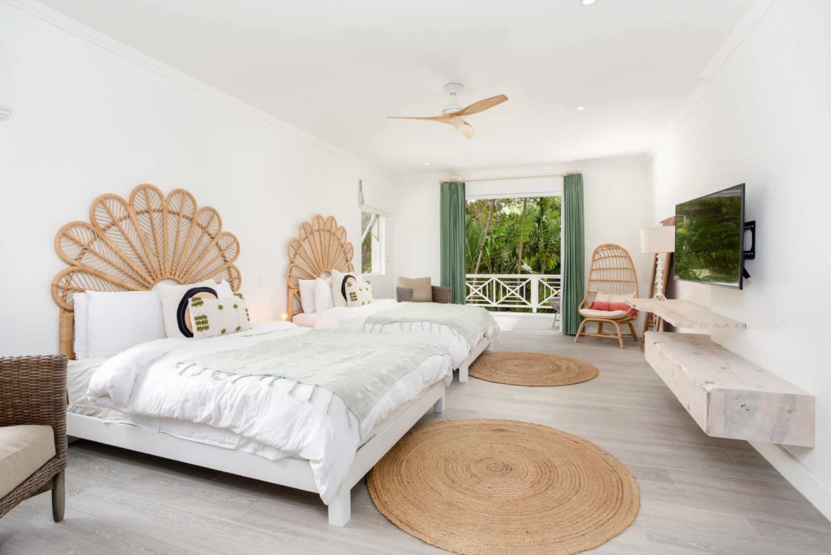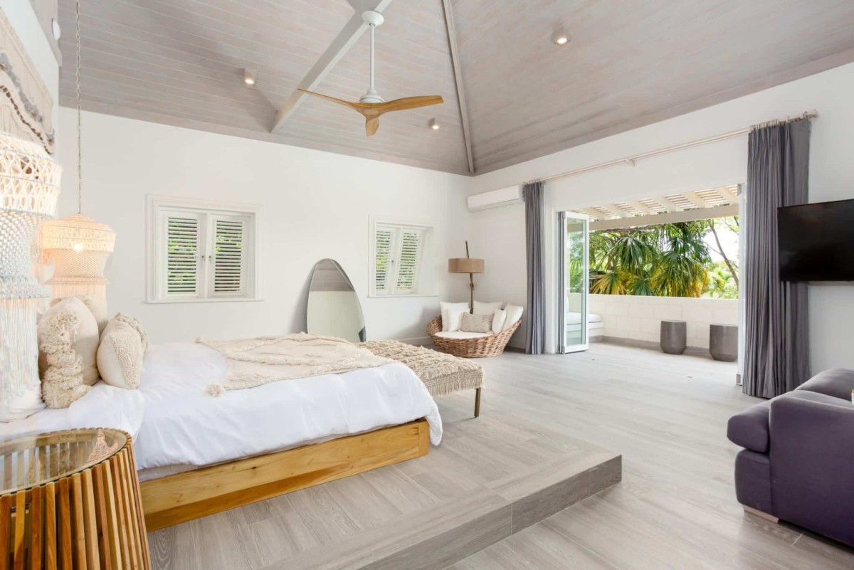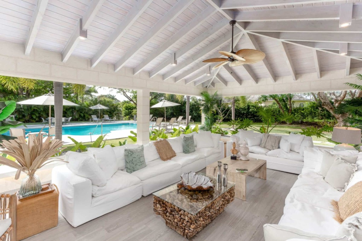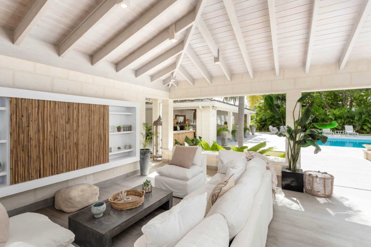 This villa is decorated with live plants, stunning artwork, and neutral tones that are relaxing to spend time in. There’s entertainment through large flatscreen televisions, enormous sitting areas perfect for socializing with a massive group, the inclusion of a large outdoor pool just beyond the villa. With an excellent tropical vibe, full staff, and a suite of amenities, this is a villa that anyone visiting Barbados will come to love.
