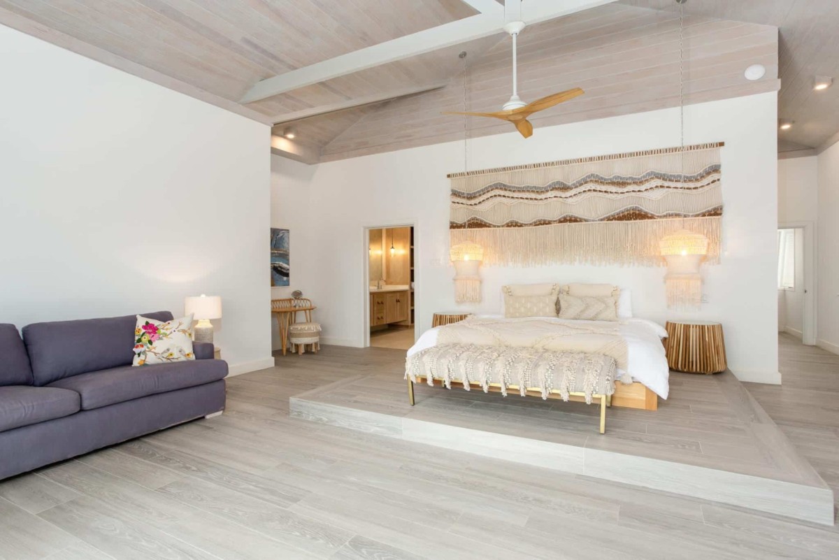 Villa Aama was renovated recently and offers an open floor plan with dining and living areas that open up on the massive pool terrace. The terrace is fully outfitted for fun in the sun and right next to the lush gardens that are available for those who want to explore native plants. In addition to the bedrooms on the ground level, it also boasts a staff area, a media and family room, and a formal dining room.