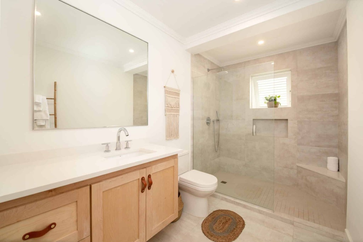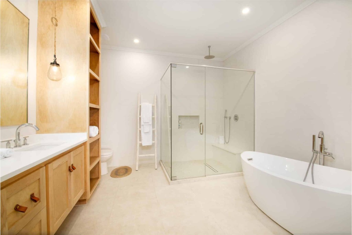 Three of the luxuriously appointed bedrooms are located on the ground floor. Each of them has a king bed and comes with an ensuite bathroom with a toilet, vanity, and shower. The remaining bedrooms are on the second floor and include all of the same elegant amenities. Two of the upstairs rooms are master suites with extra room and special touches to ensure a comfortable, relaxing vacation in Barbados.