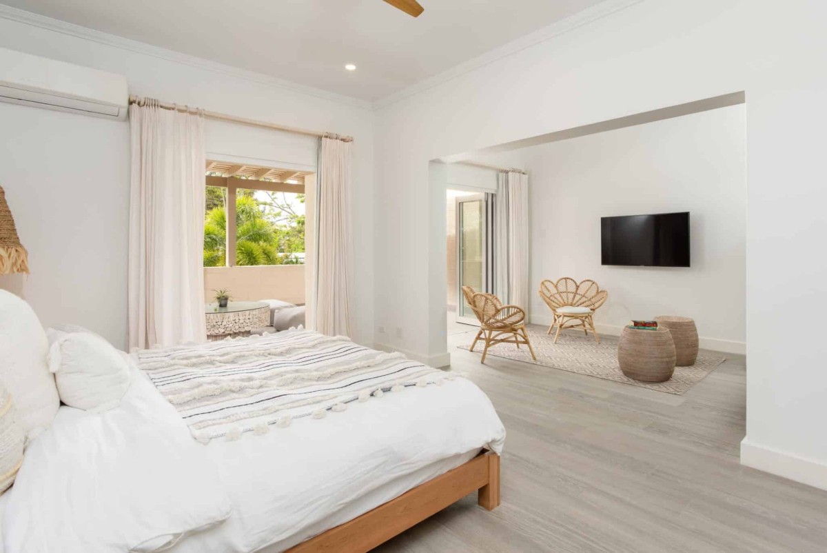 Those staying in the master bedrooms upstairs will have access to private patios which are equipped and ready for enjoying the outstanding views of the villa. Guests can enjoy a drink and watching the stars or stare out during the day at the golf course, pool, and landscaped grounds just beyond the patios.